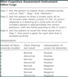 - A brief screening tool to differentiate pts with dementia from those without *Combines a 3-item recall test wit a clock-drawing test (CDT) that serves as a recall distractor* - (+) for dementia is a score of 0-2 - (-) for dementa is a score of 3-5