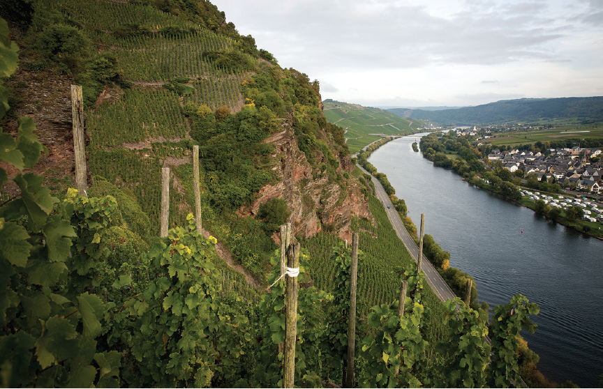 Steep vineyards (among steepest in world) and South-facing to capture sun’s warmth.