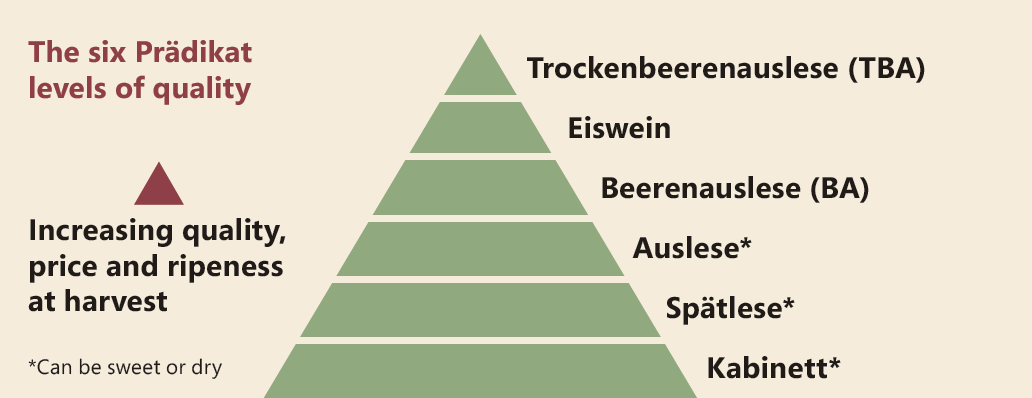 A subset of Qualitätswein categorized by ripeness at harvest. There are six prädikate levels of quality.
