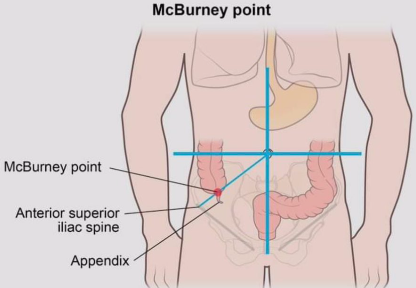Patient who is a young adult complains of acute onset of periumbilical pain that is steadily getting worse. Over a period of 12 to 24 hours, the pain starts to localize at McBurney’s point. The patient has no appetite (anorexia). Classic exam findings include low-grade fever and right lower quadrant (RLQ) pain (McBurney’s point) with rebound and guarding. The psoas and obturator signs are positive. When the appendix ruptures, clinical signs of acute abdomen occur, such as involuntary guarding, rebound, and a boardlike abdomen. Refer to ED.