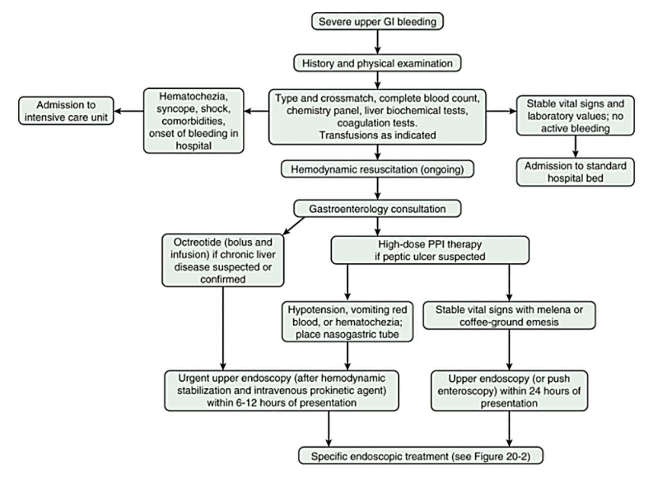 כיב פפטי (נסאיד, הליקובקטר, בקע), דליות בוושט ובכיבה (מחלות כבד, הפטיטיס ויראלי, אלכוהול), איזופאגיטיס (רפלוקס חומצה, תרופות)