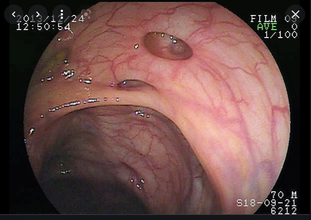 diverticulosis- לחץ שמופעל עי שכבת המוסקולוריס וגורם למוקוזה ולסאב מוקוזה להיכנס פנימה (הרחק מהלומן) עד להיווצרות שקע שיכול לגרום לדימום של כלי דם שנמצאים על הדופן של המעי.