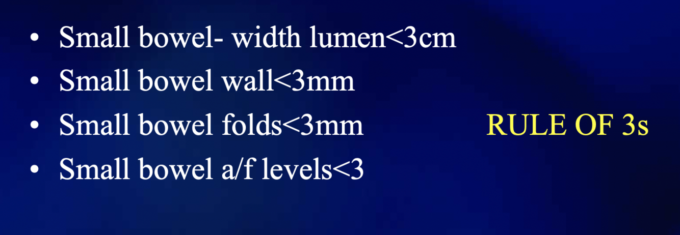 What is the “rule of 3s” with regards to a normal xray of the small bowel?