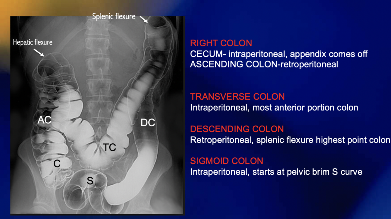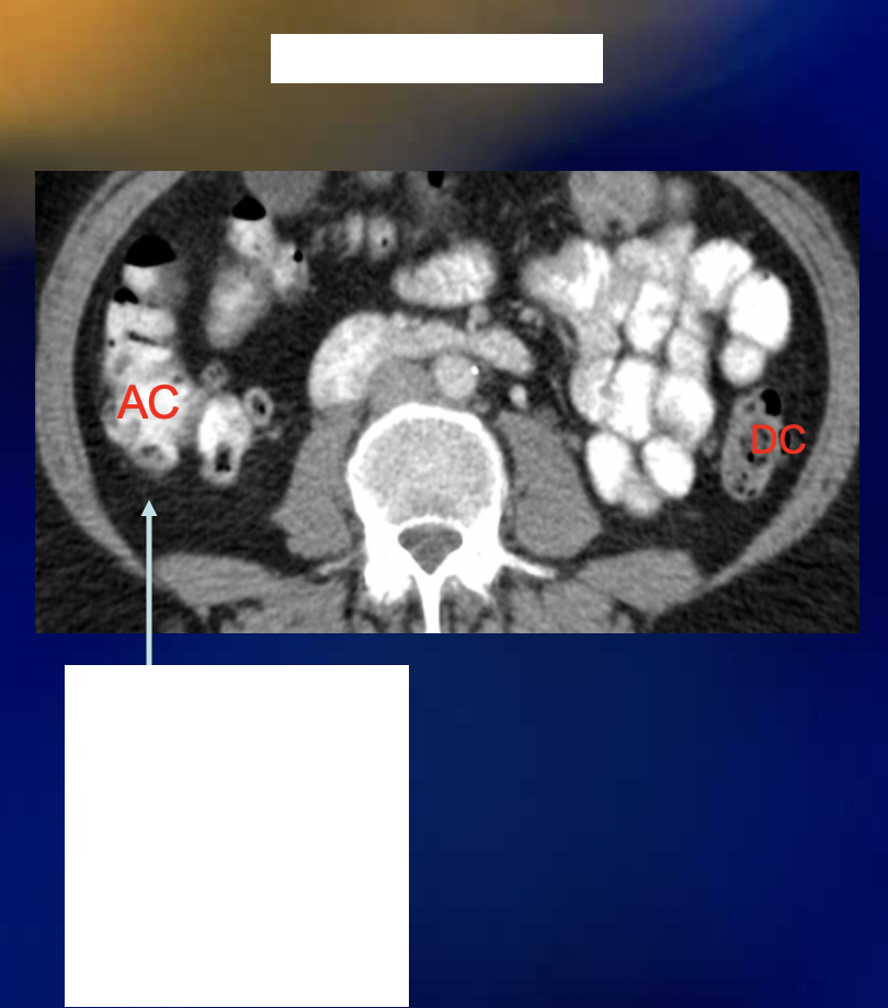 What is seen on the ascending colon?