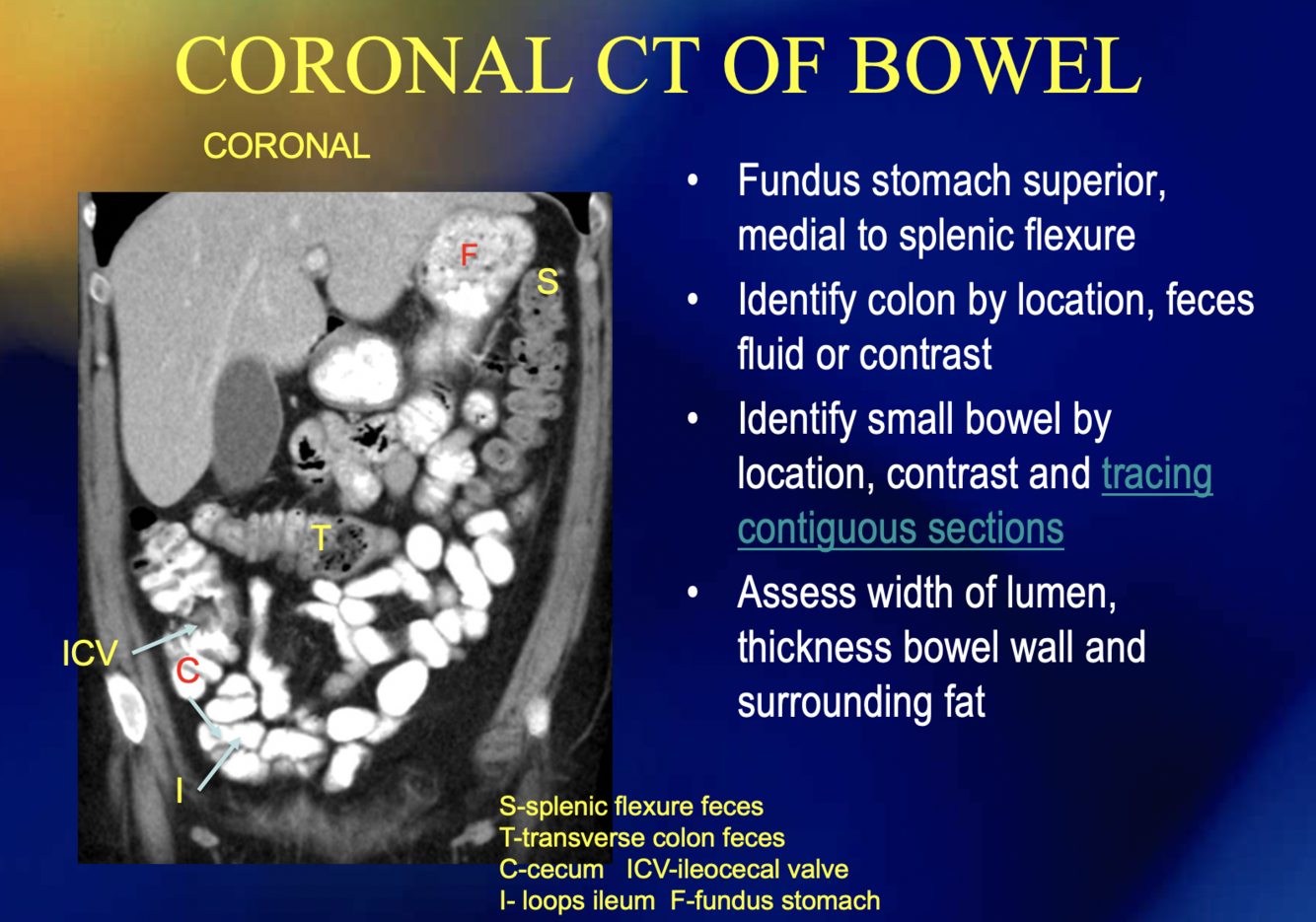 What are the signs of abnormal bowels on CT?
