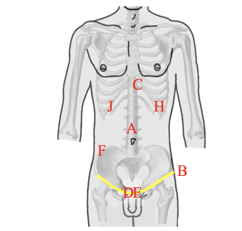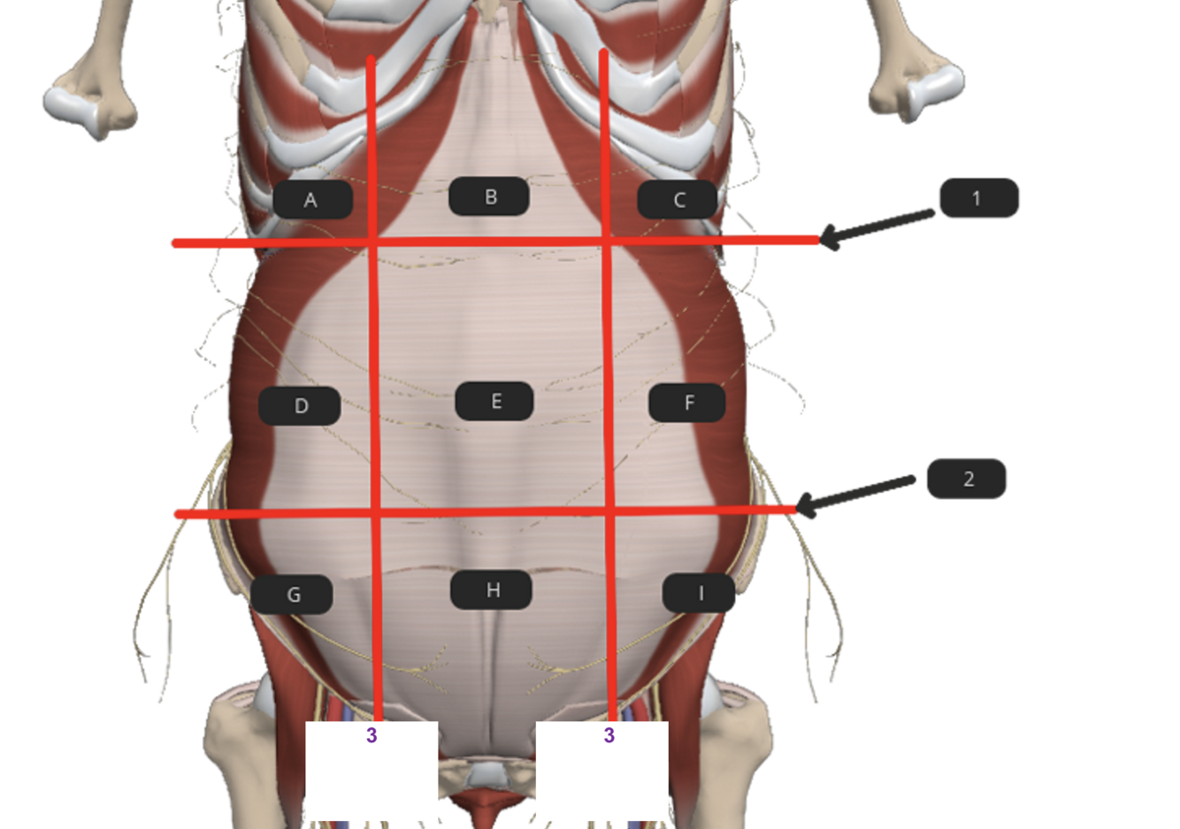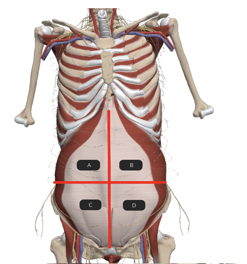 (follow the Linea Alba from the xiphoid process to pubic symphysis)