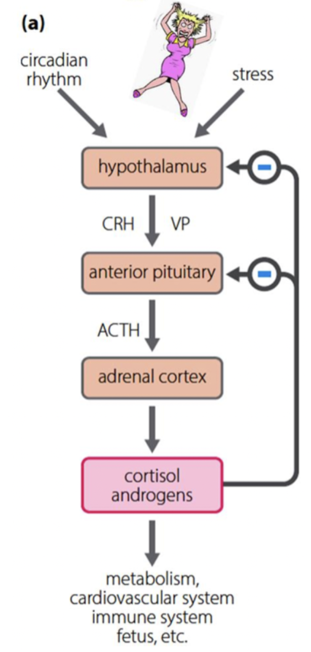 High levels of cortisol= Lower CRH and ACTH and vice versa