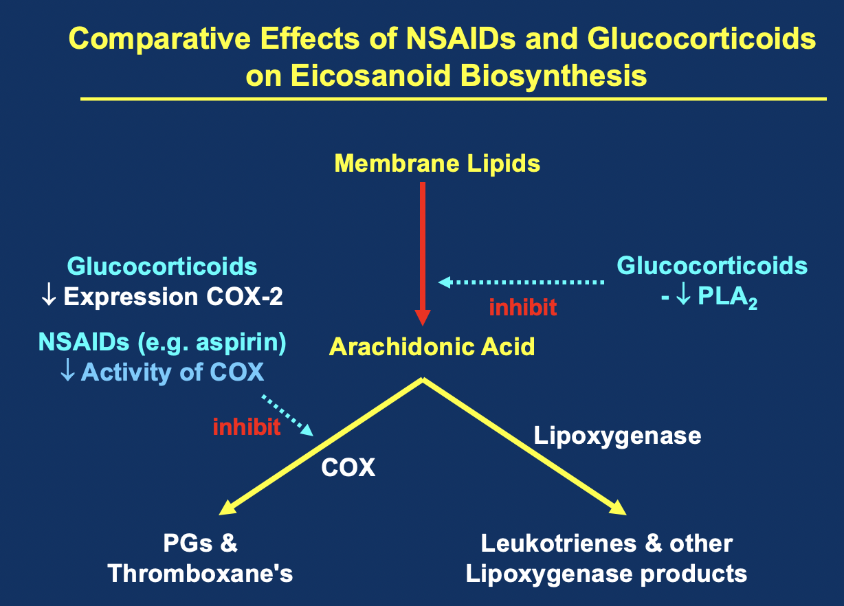 Compare NSAIDs w GCs on Eicosanoid Biosynthesis using a diagram
