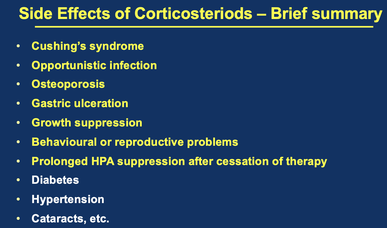 Summarise the side effects of corticosteriods