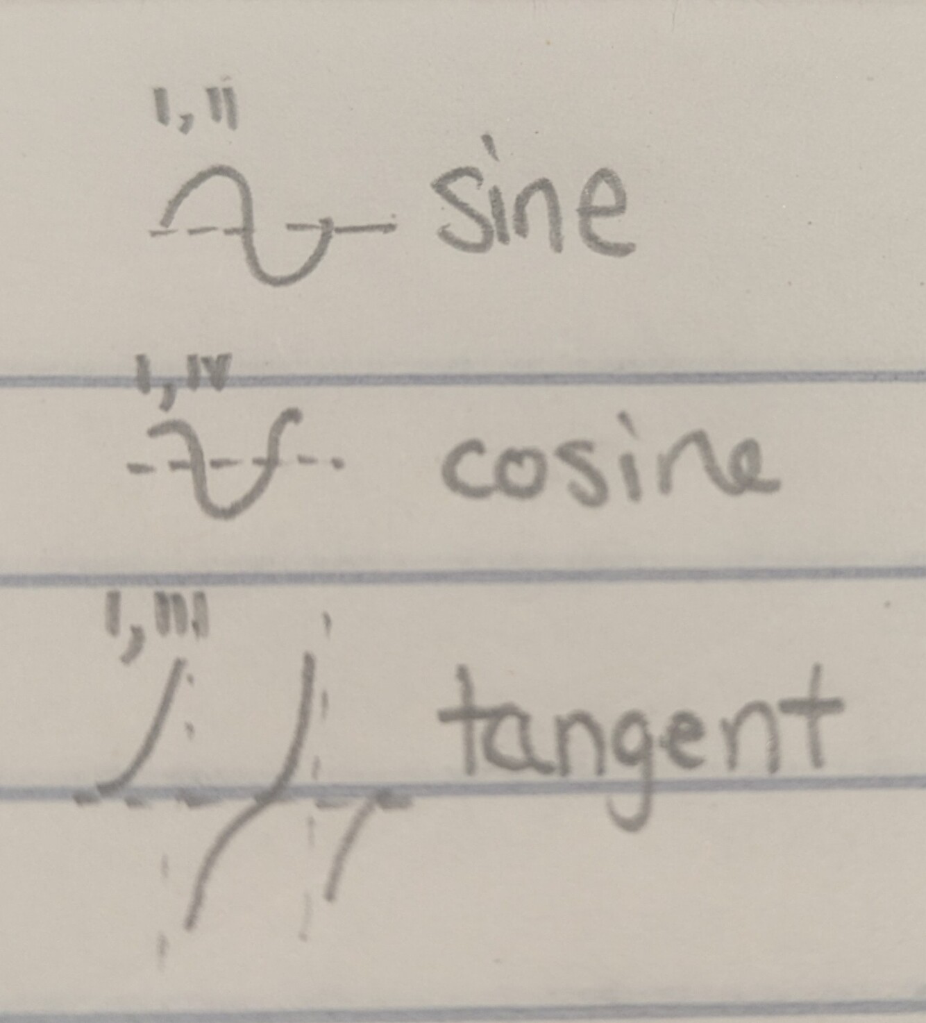 - Positive sine → Quadrant I or II
