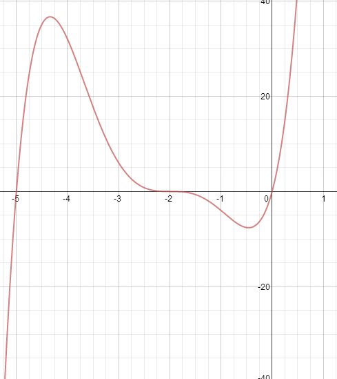 Example: (x+10)(x+13)5(x-5)2 The x intercepts at -10 and -13 are pass throughs