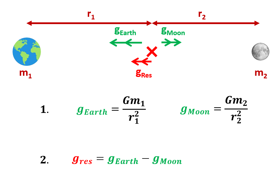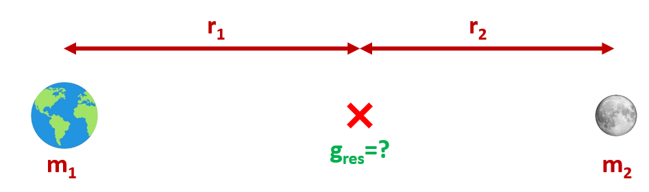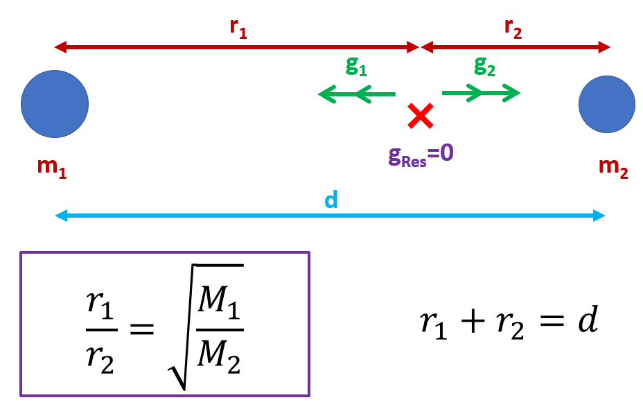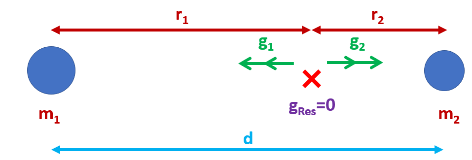 How do you you calculate the field strength (or force) neutral point between two bodies in a gravitational field?