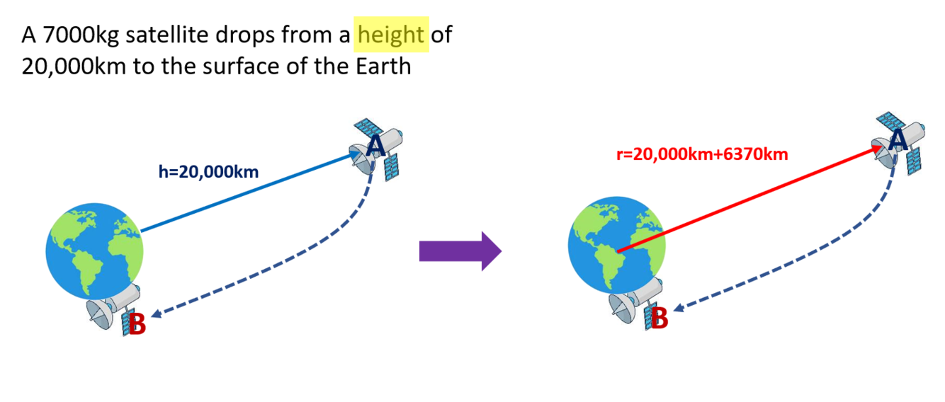 If a gravitational fields question uses the word ‘height’ what must you do?