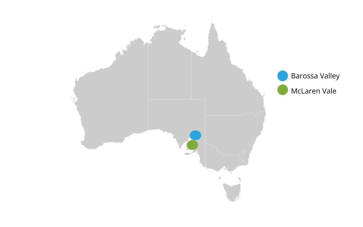 What grapes are usually blended with Grenache in Barossa Valley and McLaren Vale?