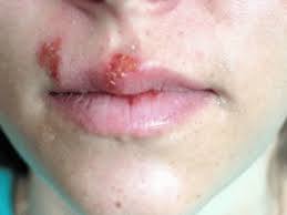Fever blister or cold sores; a recurring viral infection.
