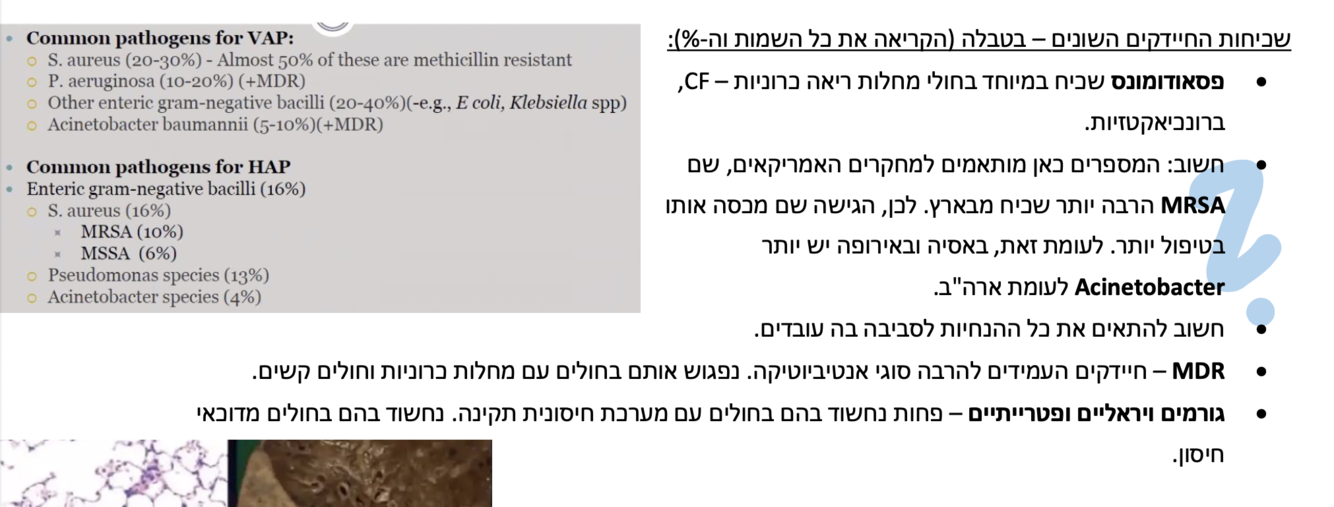 *כשמזהים אנטרוקוק או קנדידה לרוב זו נשאות והם לא המחוללים שהביאו לפנאומוניה.
