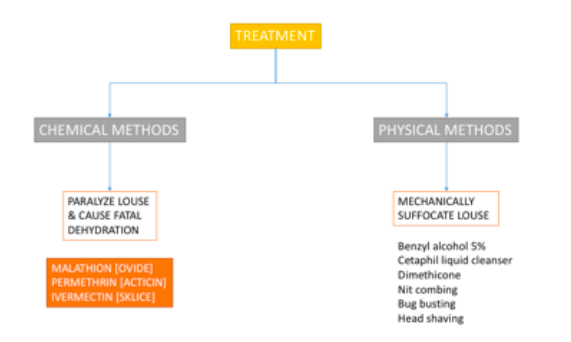 Successful eradication of lice requires killing both the adult and egg stages. For this reason, treatment involves repeated topical application at intervals to kill the recently emerged lice