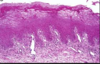 What disease causes spores with organisms inside and squamous hyperplasia?