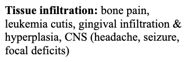 Describe the presentation of tissue infiltration in AML