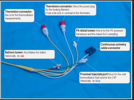 In a Swan Ganz cath which 2 ports are not to be used?