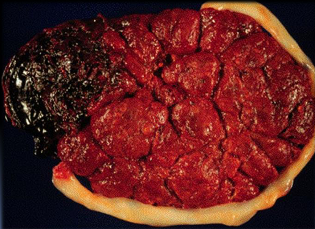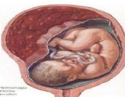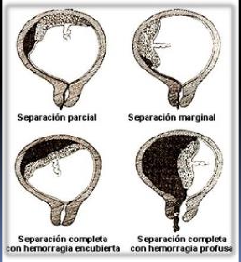 Desprendimiento parcial o total de la placenta de su inserción normal antes del parto, con formación de un hematoma por rotura de vasos de la decidua basal.