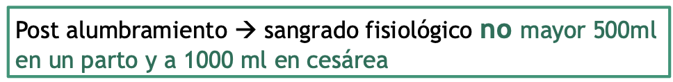 ¿Cuál es el sangrado fisiológico normal post alumbramiento?