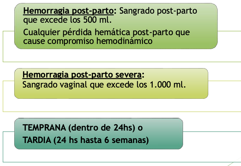 Sangrado postparto que excede los 500 ml o cualquier pérdida que cause compromiso hemodinámico.