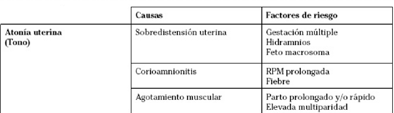 ¿Qué significa el término “Tono” en las causas de hemorragia postparto?