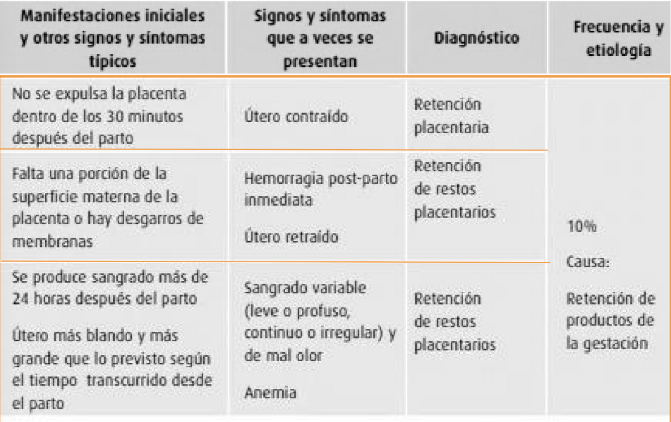 ¿Cuáles son los signos y síntomas que a veces se presentan en hemorragia postparto?