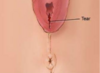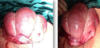 Inversión uterina visible. 🚨 Emergencia que requiere corrección inmediata.