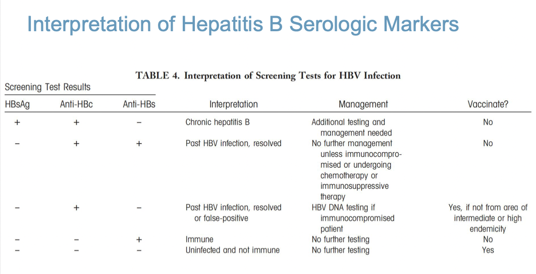 Interpretation of Hepatitis B Serologic Markers