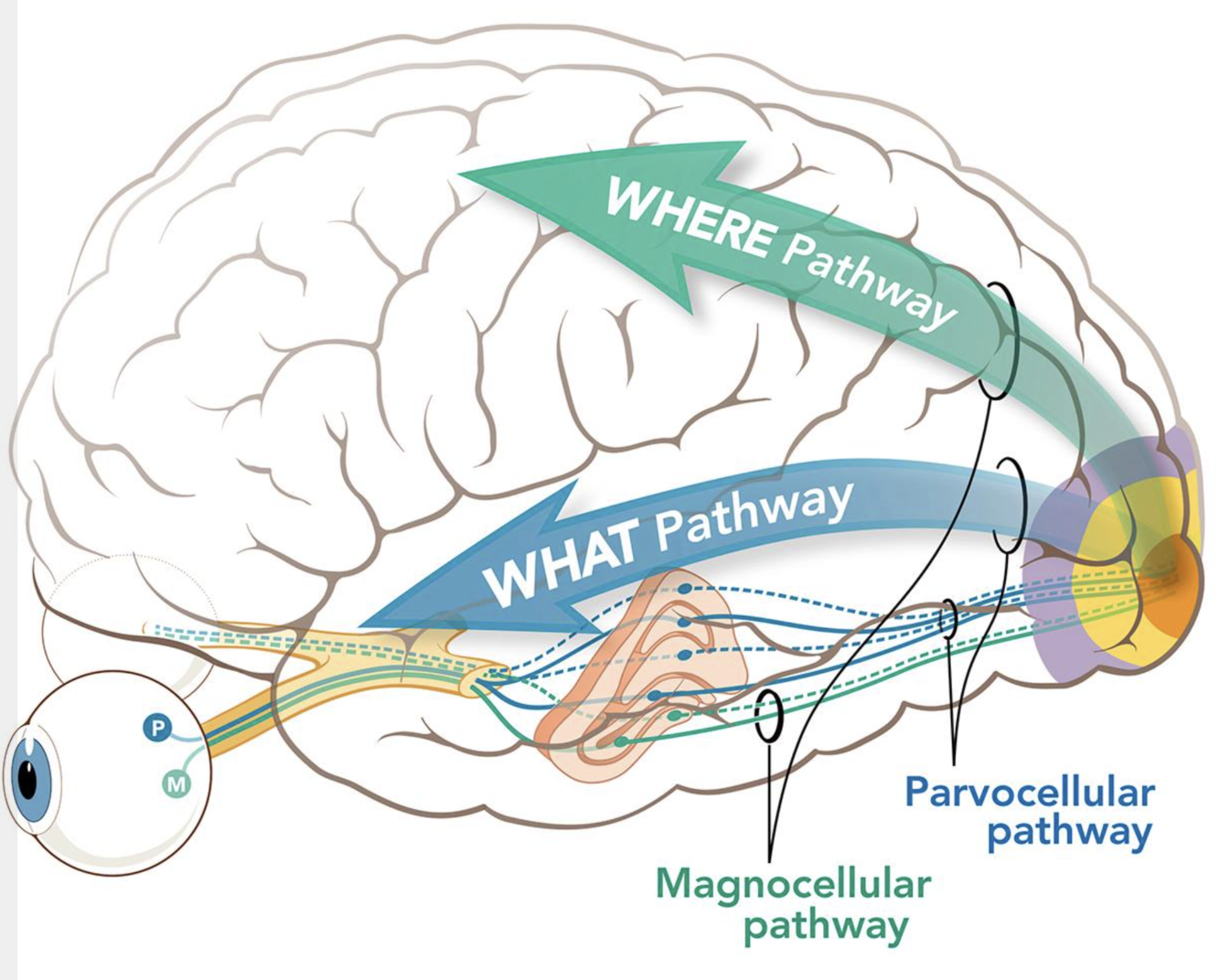 (magnocellular pathway - the “where” stram)