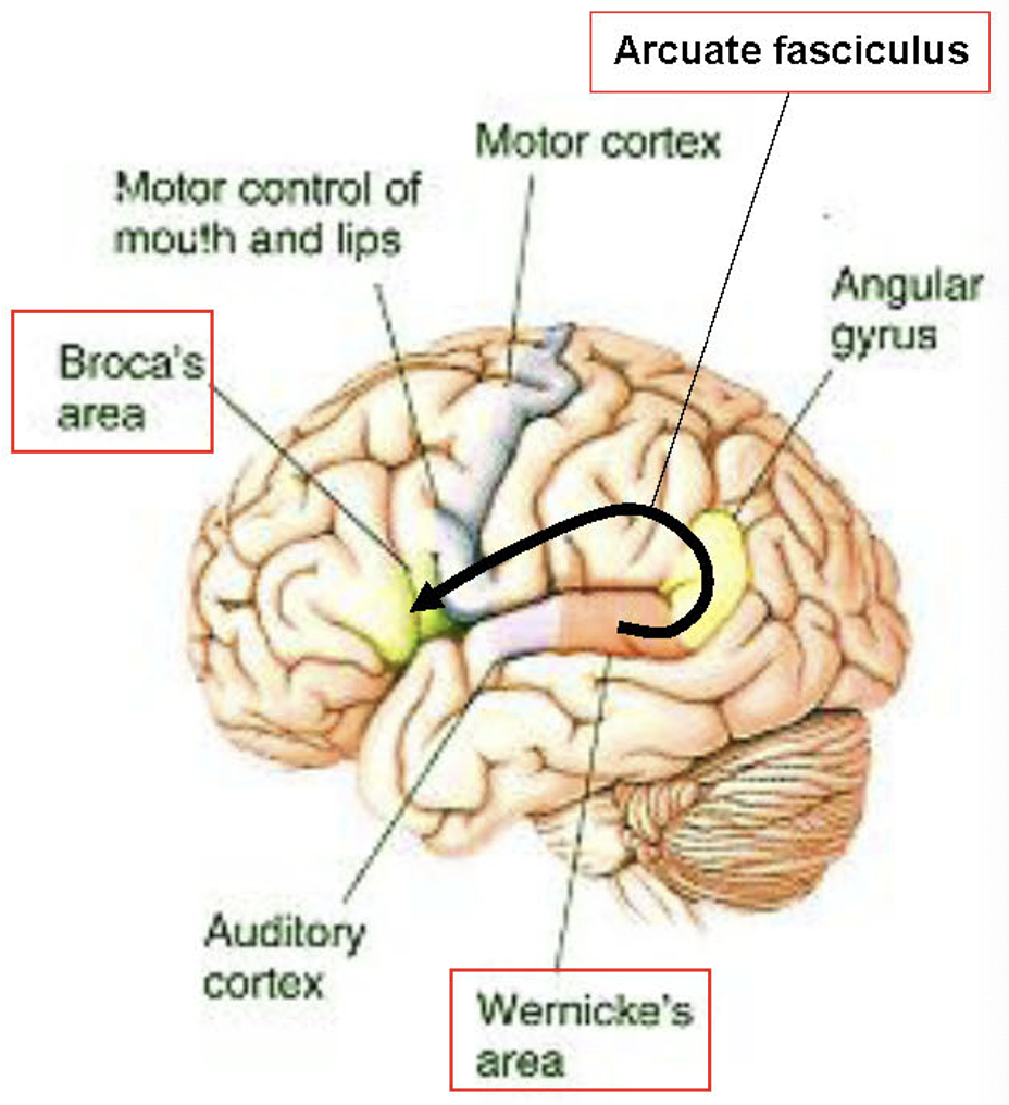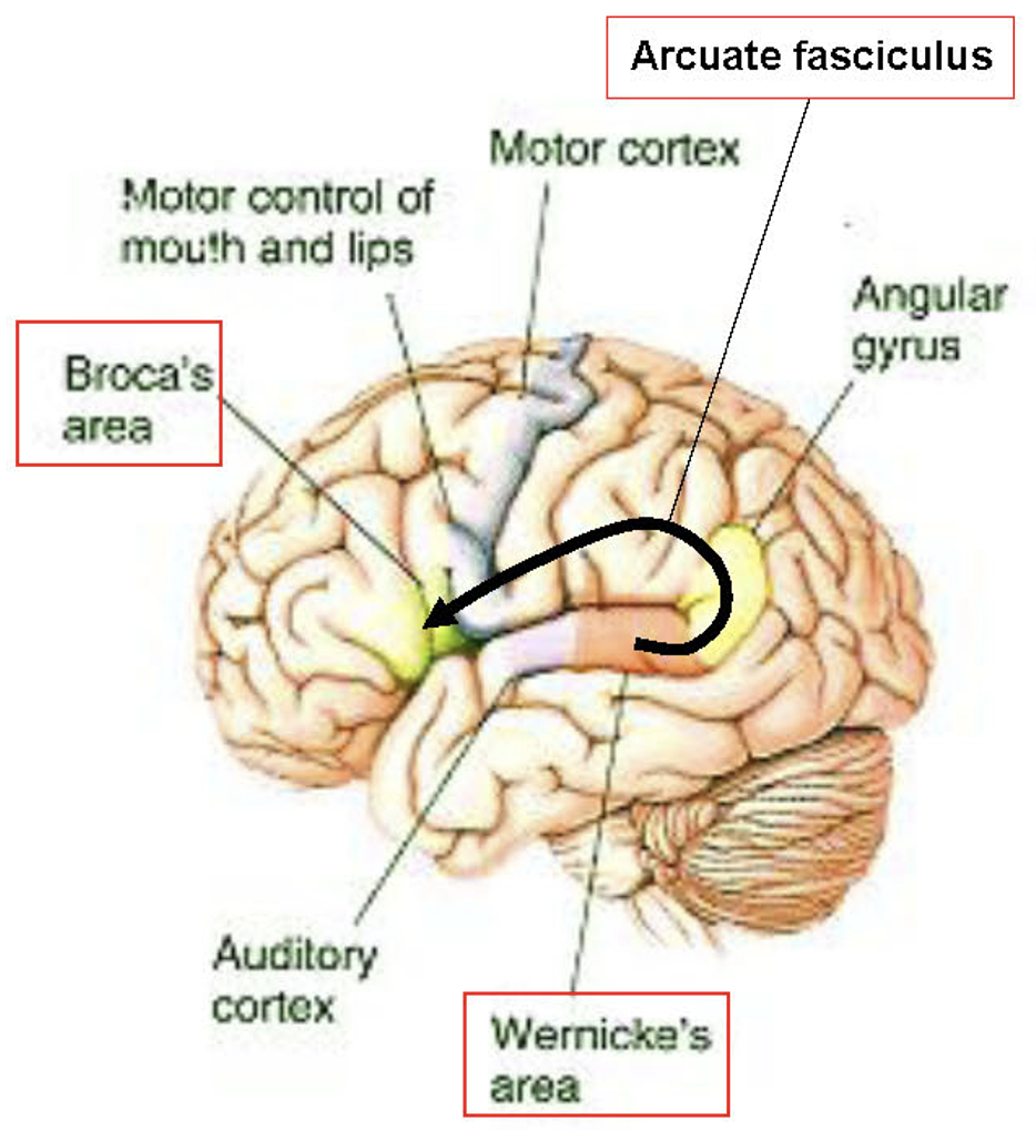 (These areas interface with a distributed system for encoding conceptual knowledge in order to associate word forms with meaning)
