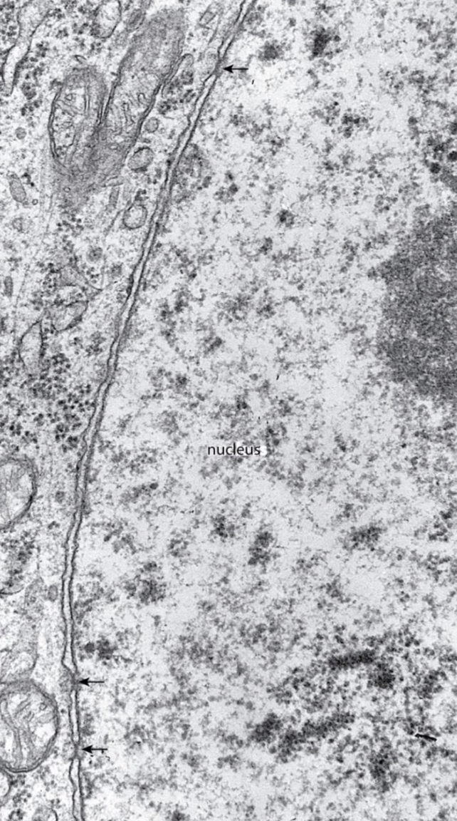 Arrows point to Nuclear Pore Complex (NPC)