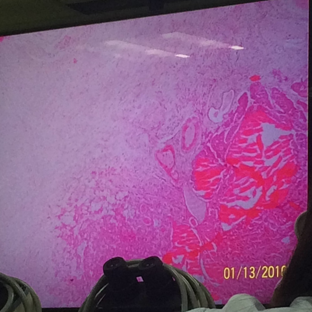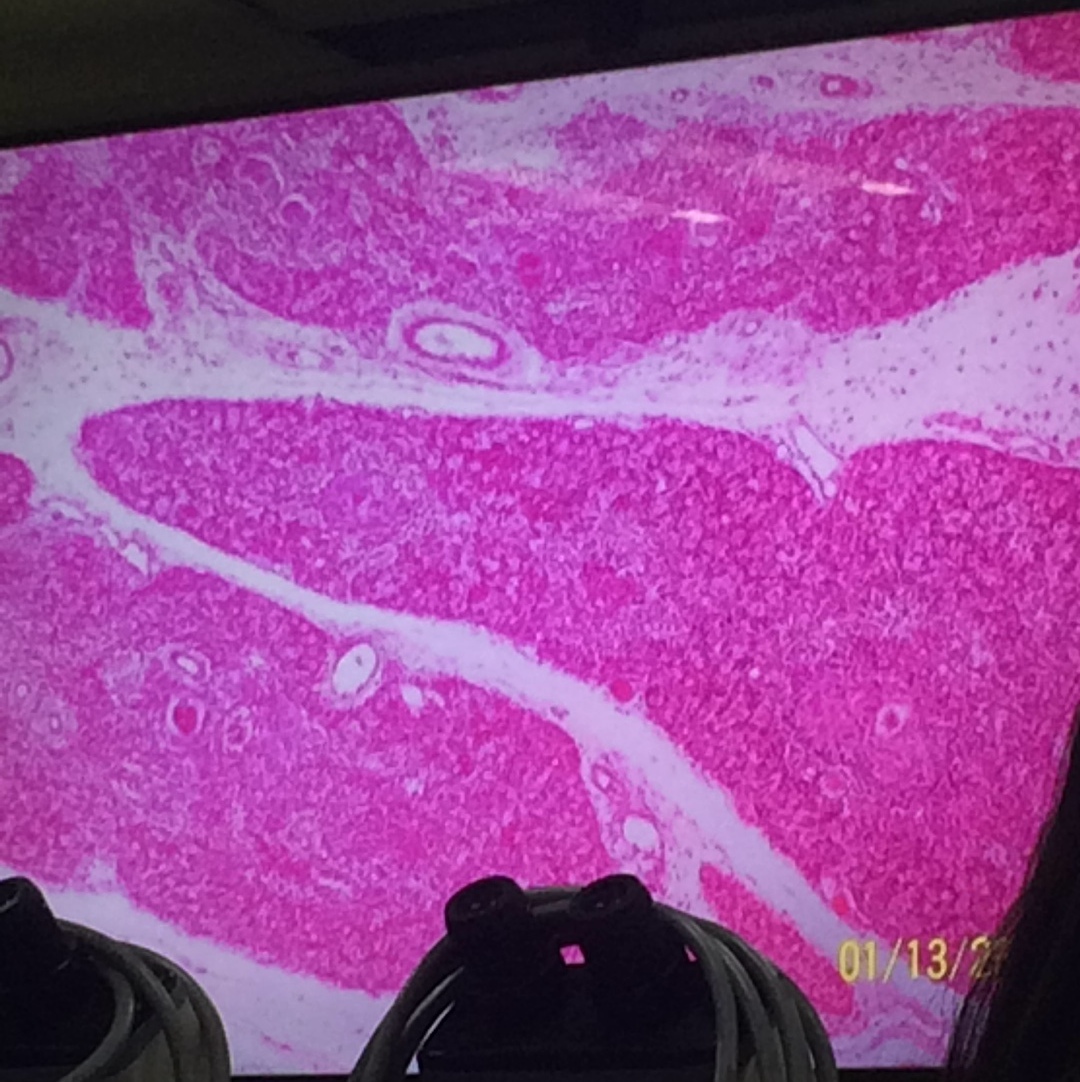*Notice that the slide is pale-staining