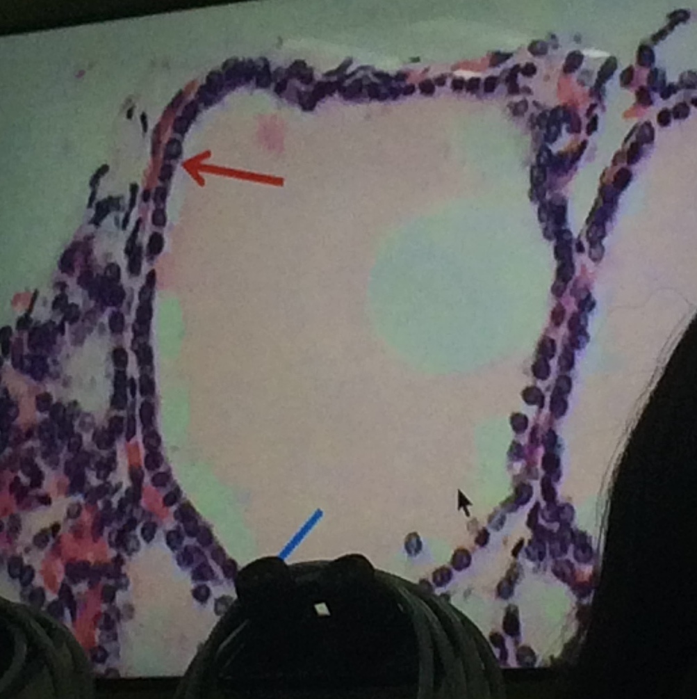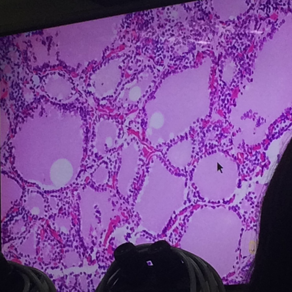 Pointed Structure: Simple cuboidal epithelium; normal thyroid