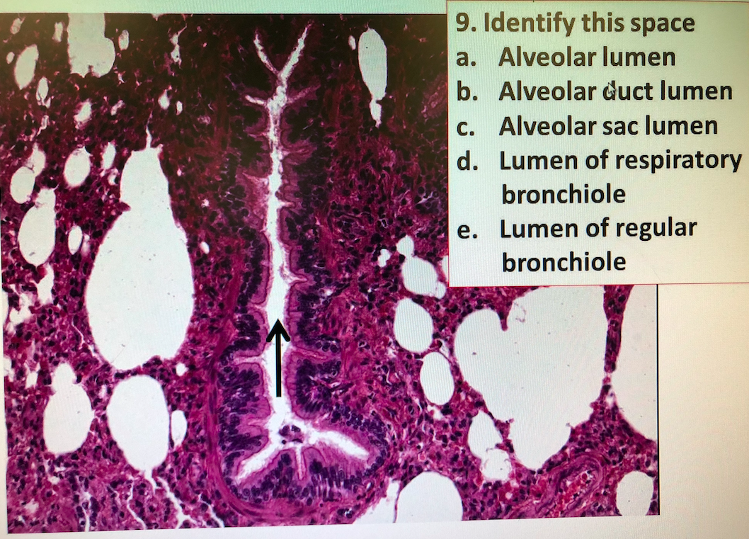 E. Lumen of regular bronchiole (no cartilage)