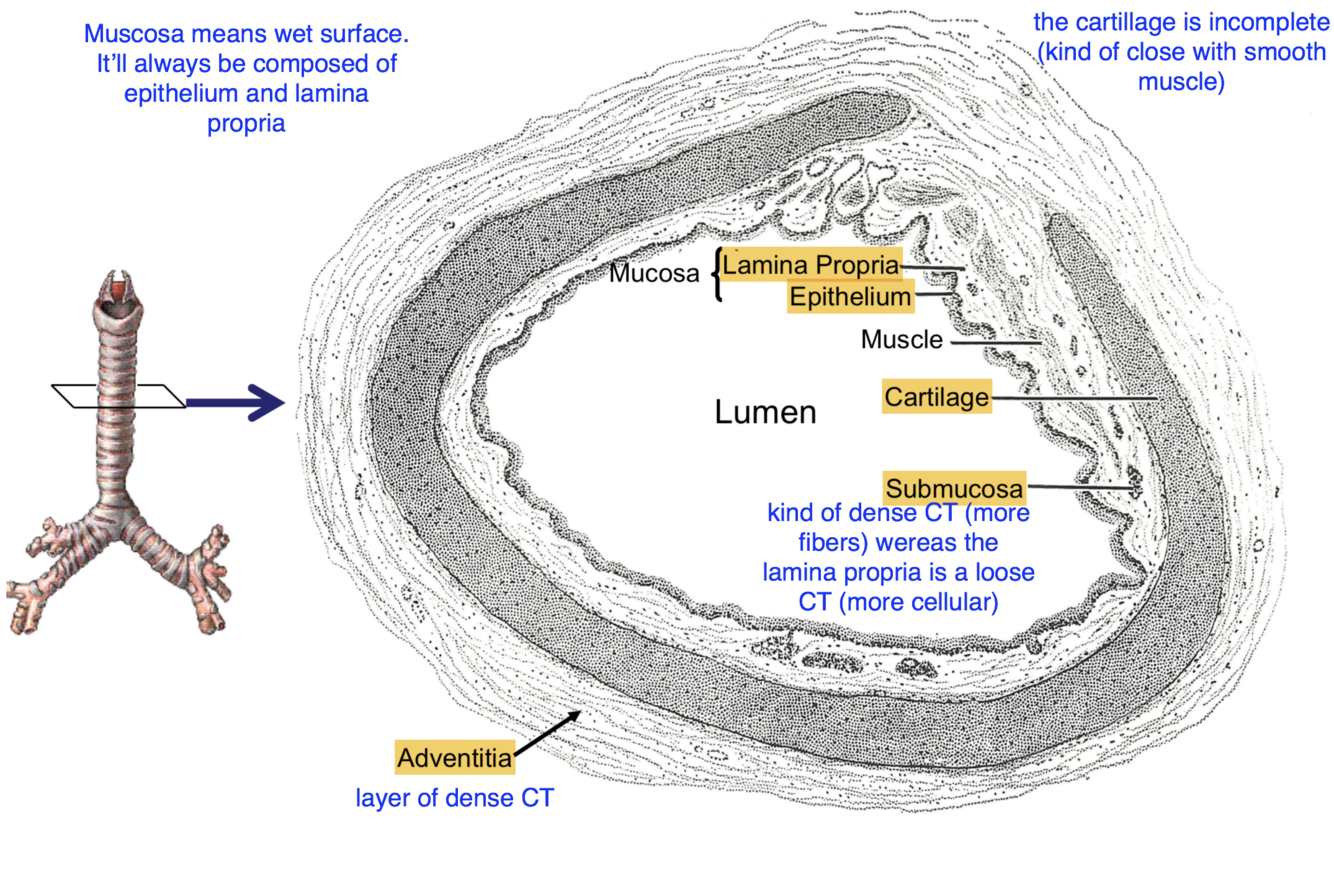 Describre the respiratory epithelium (trachea)