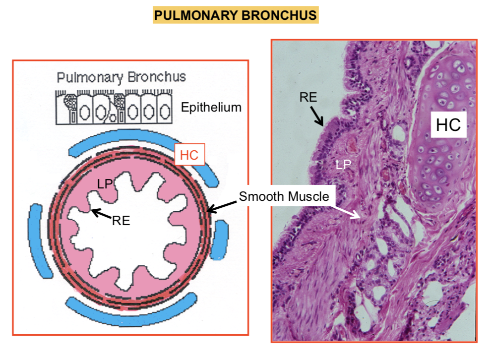What caracterizes the pulmonary bronchus histology appearance?