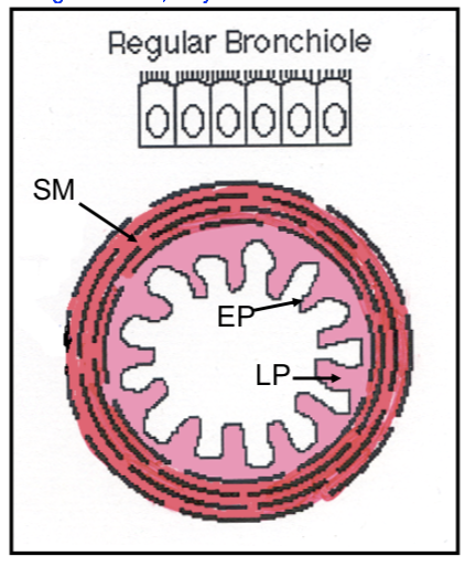 What caracterizes the REGULAR bronchiole histology appearance?