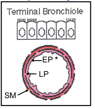 What caracterizes the TERMINAL bronchiole histology appearance?