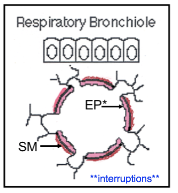 What caracterizes the RESPIRATORY bronchiole histology appearance?