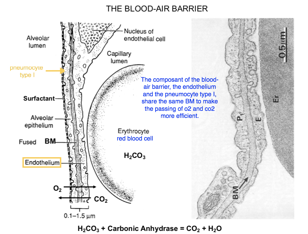 What are the 3 components of the blood-air barrier?