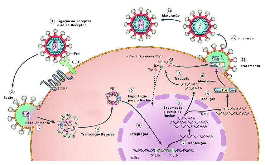 Receptor CCR5: puxar o material genético do HIV (RNA) para dentro da célula