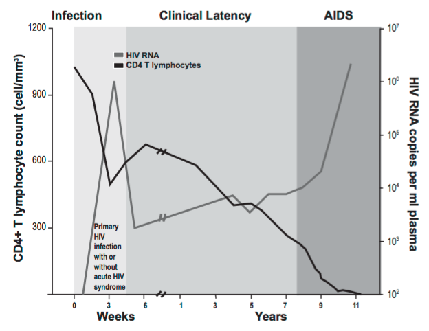 Caracterize as três fases da historia natural do HIV?