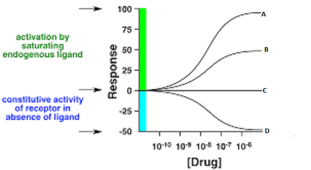 Identify Agonist, antagonist, partial agonist, and inverse agonist
