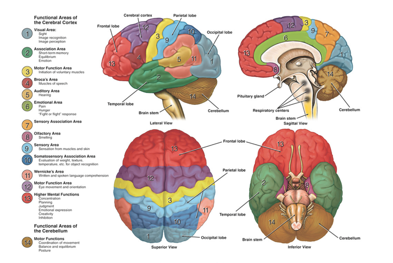 <p>What are some of the components of the brain?</p>
