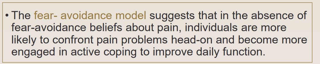 Joan’s worry is causing her to engage with maladaptive pain management techniques i.e. not doing too much activity, only relying on medication. However, if this response to pain does not work, pain is likely to continue and worsen until an appropriate solution is found within an appropriate biopsychosocial framework.