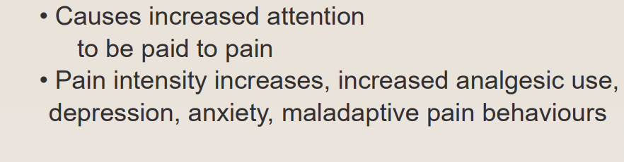 Joan is a 45-year-old office worker who re-presents to you with persistent lower back pain. She initially presented 3 weeks ago with acute onset severe pain after lifting a heavy box for which you recommended paracetamol and an NSAID. Her pain has improved but not resolved. Joan’s lower back pain is aching in nature and diffuse, it radiates into her left buttock. Sitting for long periods and housework exacerbate her pain. Joan is worried that her back pain will get worse if she does too much. Explain how worrying may exacerbate Joan’s pain.