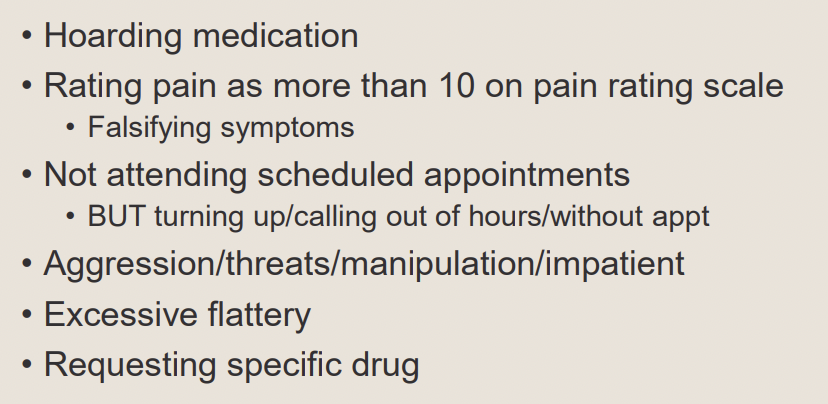 Mr Clarke calls you on the phone because his chronic neck pain has been worse after he helped his sister move house. He has been on morphine for over a year at the same dose, and repeatedly asks for an increase in the dosage. Another doctor suspects that Mr Clarke is abusing his medication. Why might the doctor think this?